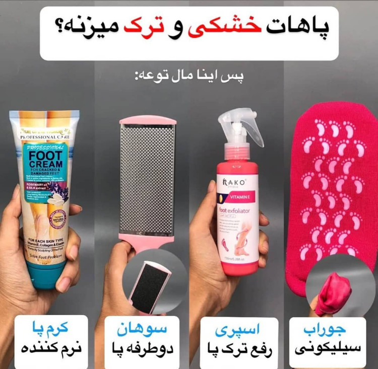 پک چهار عددی بهداشت و مراقبت پا اصلی جوراب سلیکونی.رنده پا .اسپری ترک پا