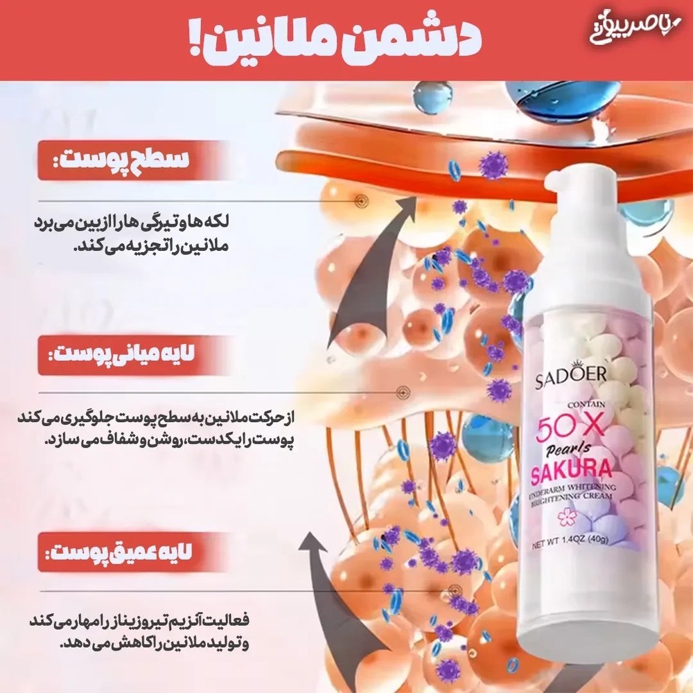 کرم روشن کننده پمپی زیر بغل مرواریدی ساکورا سادور 40 گرم قیمت عمده پک تعداد بالا