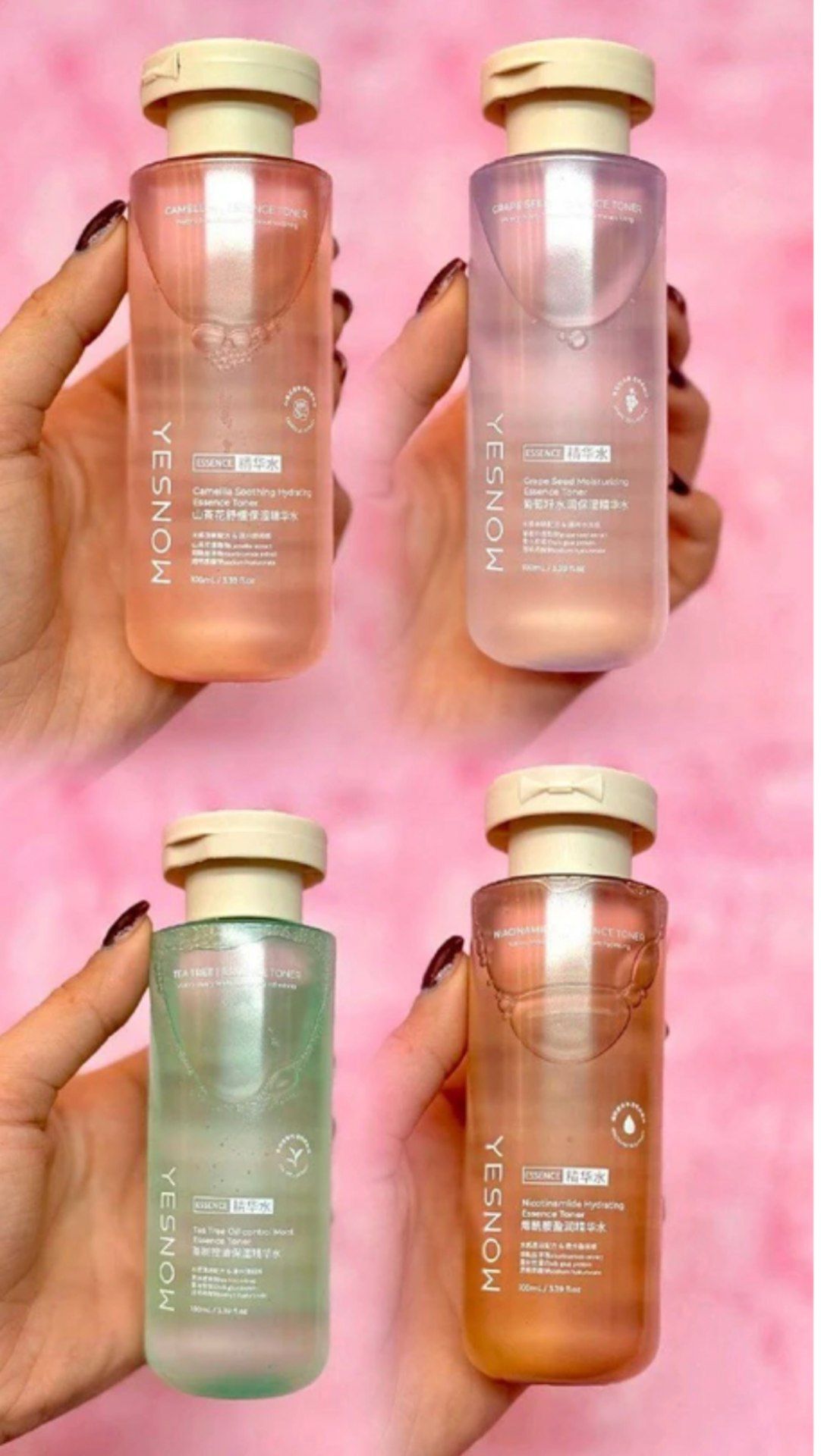 تونر 100میل تخصصی yesnow دارای 4رایحه، نیاسید آمید ( برای پوست خشک ) هسته انگور( برای پوست چرب و مختلط) کاملیاس( برای پوست خشک و نرمال) چای سبز (برای کنترل چربی)